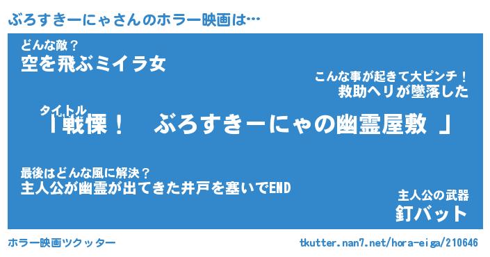 | 胡散臭い通販商品みたいなあだ名 | 『億万長者になれる霊験あらたかなお札…その名も「ぶろすきーにゃ」』 |
