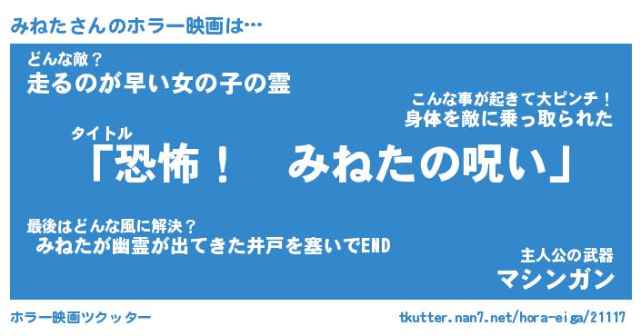 | 男性向けラノベタイトル風あだ名 | 『みねたの憂鬱』 |