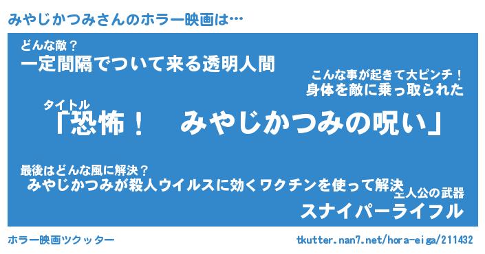 | 男性向けラノベタイトル風あだ名 | 『みやじかつみの憂鬱』 |
