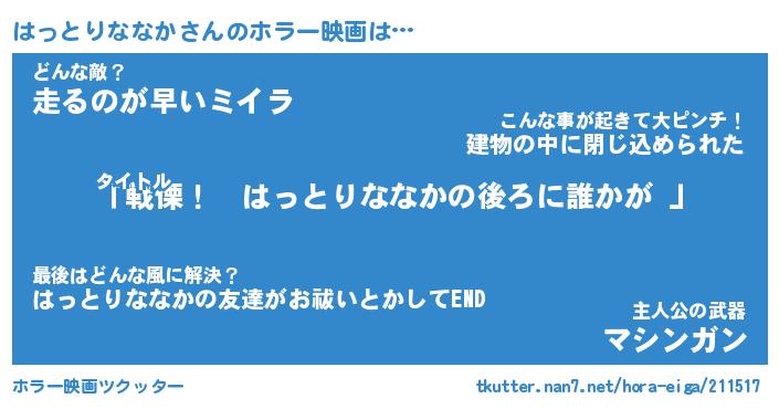 | 胡散臭い通販商品みたいなあだ名 | 『億万長者になれる水晶球…その名も「はっとりななか」』 |
