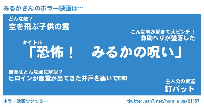 | 男性向けラノベタイトル風あだ名 | 『みるかの憂鬱』 |