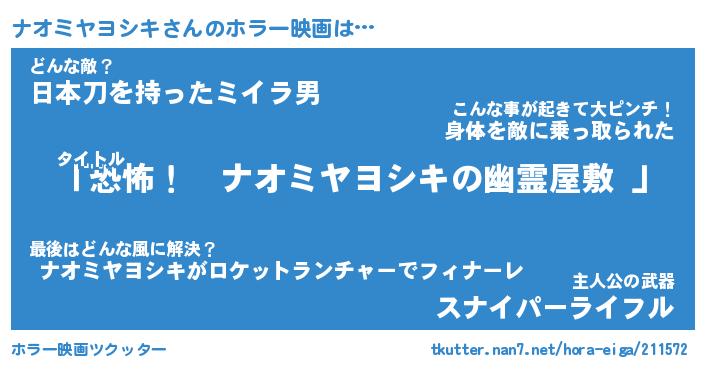 | 男性向けラノベタイトル風あだ名 | 『ナオミヤヨシキの憂鬱』 |