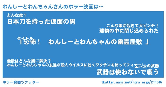 | 男性向けラノベタイトル風あだ名 | 『わんしーとわんちゃんの憂鬱』 |