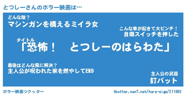 | 男性向けラノベタイトル風あだ名 | 『とつしーの憂鬱』 |