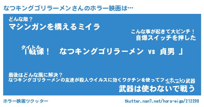 | ヒーロー風カッコイイあだ名 | 『スーパーナツキングゴリラーメン』 |