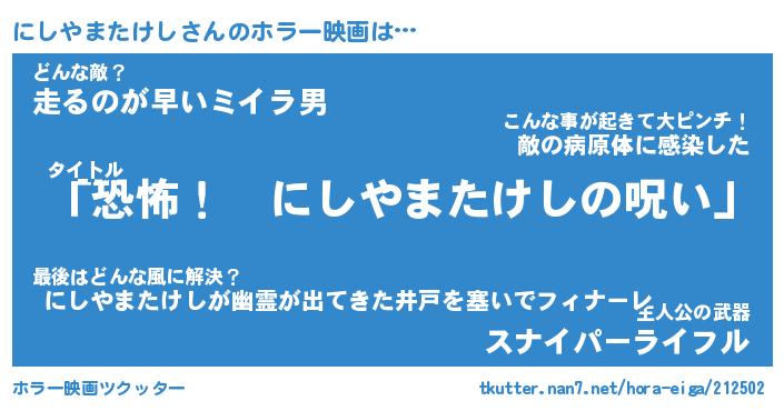 | 男性向けラノベタイトル風あだ名 | 『にしやまたけしの憂鬱』 |
