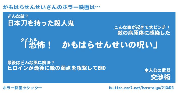 | 男性向けラノベタイトル風あだ名 | 『かもはらせんせいの憂鬱』 |