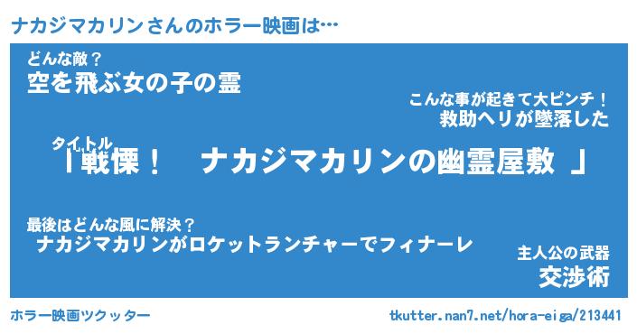 | 男性向けラノベタイトル風あだ名 | 『ナカジマカリンアートオンライン』 |