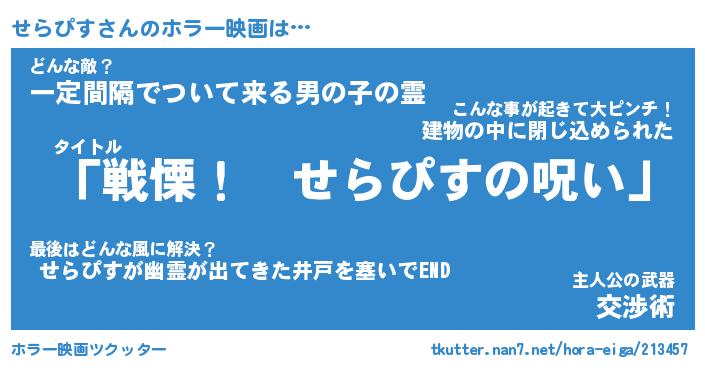 | 意味不明あだ名 | 『ペロリンせらぴす』『永久保存せらぴす』 |