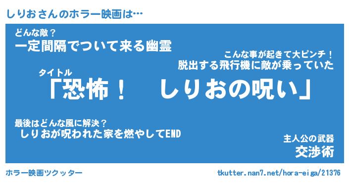 | 男性向けラノベタイトル風あだ名 | 『しりおの憂鬱』 |
