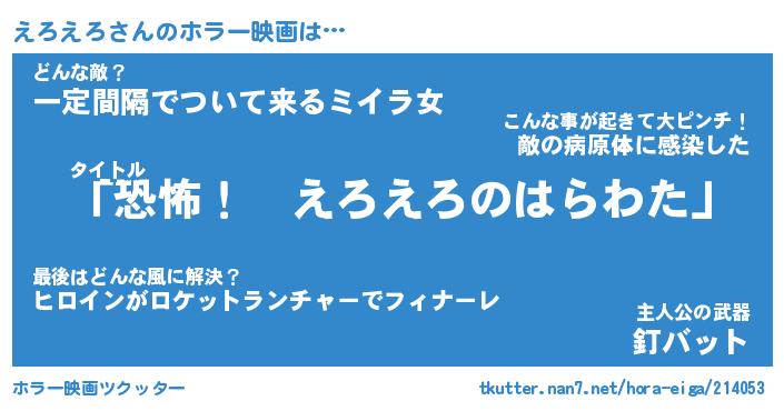 | 男性向けラノベタイトル風あだ名 | 『えろえろの憂鬱』 |