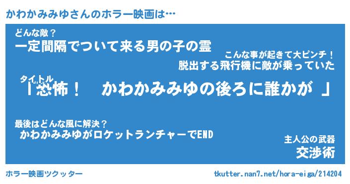 | 胡散臭い通販商品みたいなあだ名 | 『モテモテ間違いなし水晶球…その名も「かわかみみゆ」』 |