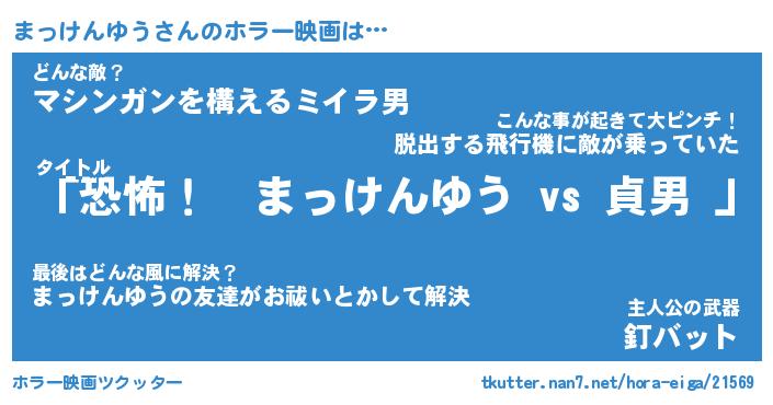 | 男性向けラノベタイトル風あだ名 | 『まっけんゆうの憂鬱』 |