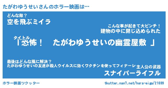 | 男性向けラノベタイトル風あだ名 | 『たがわゆうせいの憂鬱』 |