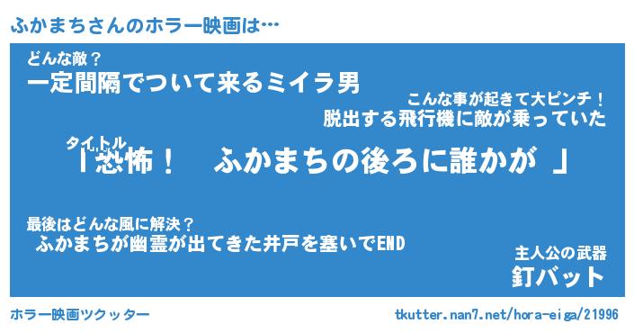 | 男性向けラノベタイトル風あだ名 | 『ふかまちの憂鬱』 |