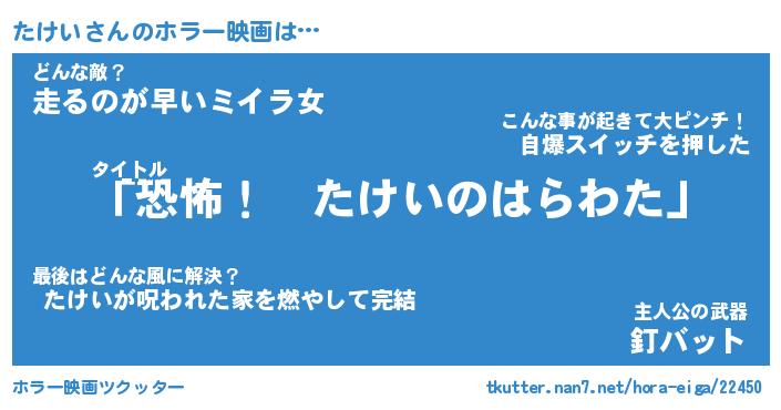 | 男性向けラノベタイトル風あだ名 | 『たけいの憂鬱』 |
