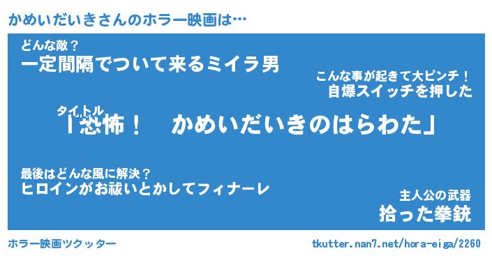 | 胡散臭い通販商品みたいなあだ名 | 『モテモテ間違いなしブレスレット…その名も「かめいだいき」』 |