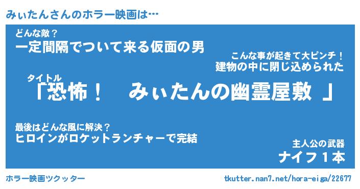 | 男性向けラノベタイトル風あだ名 | 『みぃたんの憂鬱』 |