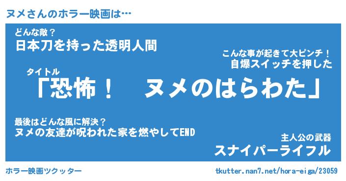 | 男性向けラノベタイトル風あだ名 | 『ヌメの憂鬱』 |