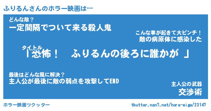 | 男性向けラノベタイトル風あだ名 | 『ふりるんの憂鬱』 |