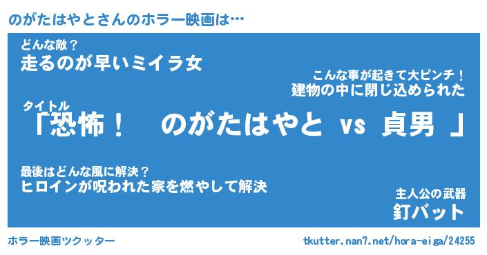 | 男性向けラノベタイトル風あだ名 | 『のがたはやとの憂鬱』 |