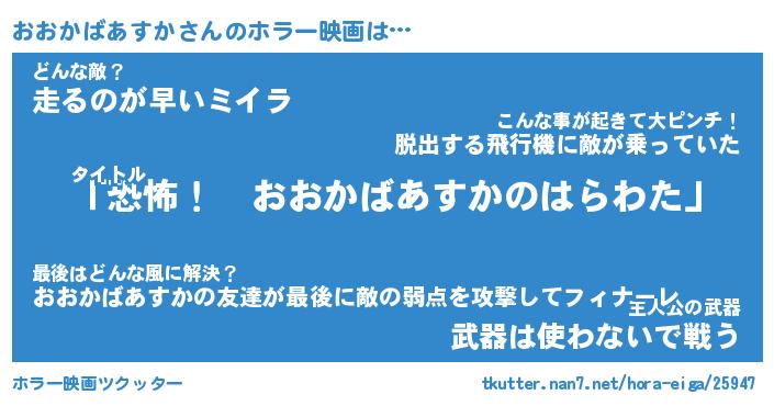 | 男性向けラノベタイトル風あだ名 | 『おおかばあすかの憂鬱』 |