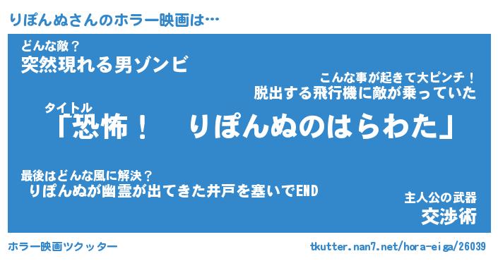 | 男性向けラノベタイトル風あだ名 | 『りぽんぬの憂鬱』 |