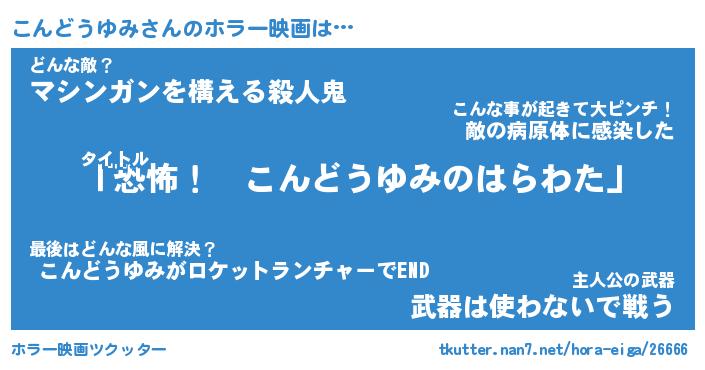 | 胡散臭い通販商品みたいなあだ名 | 『必ず成功するブレスレット…その名も「こんどうゆみ」』 |