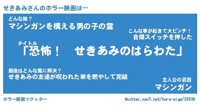 | 男性向けラノベタイトル風あだ名 | 『せきあみの憂鬱』 |