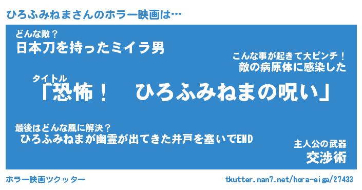 | 男性向けラノベタイトル風あだ名 | 『ひろふみねまの憂鬱』 |