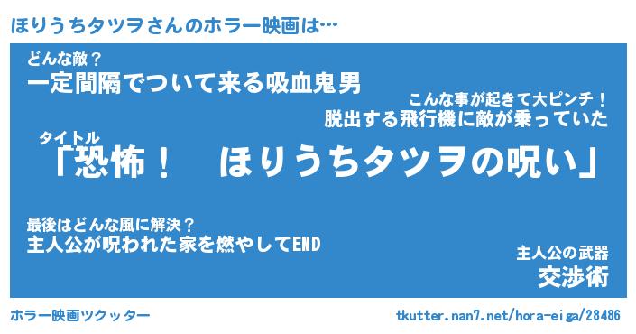 | 男性向けラノベタイトル風あだ名 | 『ほりうちタツヲの憂鬱』 |