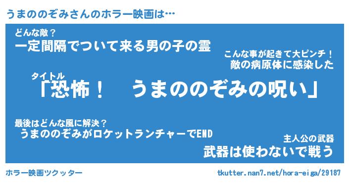 | ヒーロー風カッコイイあだ名 | 『スーパーウマノノゾミ』『暗黒騎士ウマ』 |