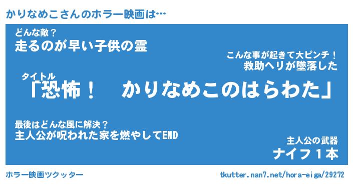 | ヒーロー風カッコイイあだ名 | 『スーパーカリナメコ』『暗黒騎士カリ』 |