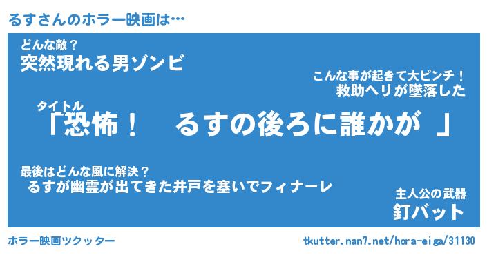 | 男性向けラノベタイトル風あだ名 | 『るすの憂鬱』 |