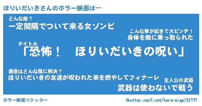 | 男性向けラノベタイトル風あだ名 | 『ほりいだいきの憂鬱』 |