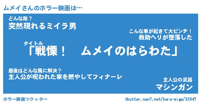 | ヘコむあだ名 | 『ムメにー』『なまこ酢』『ムメお』 |