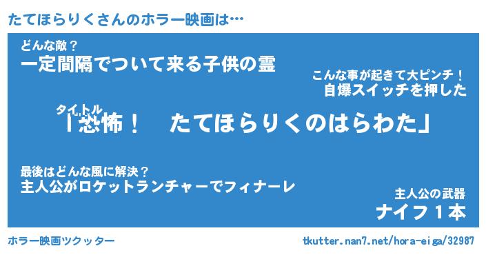 | ヒーロー風カッコイイあだ名 | 『スーパータテホラリク』『魔戒騎士タテ』 |