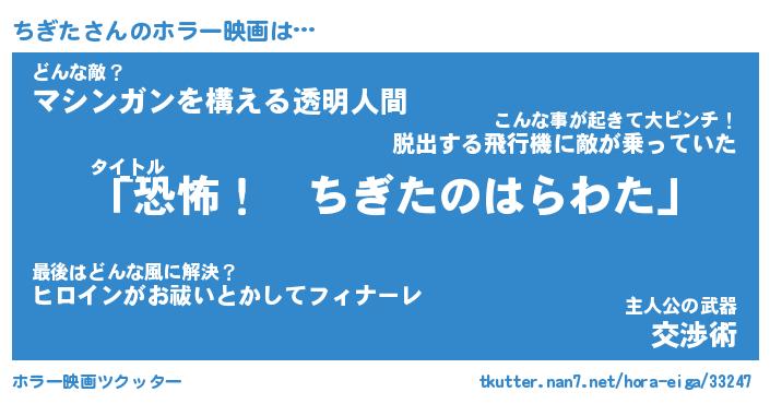 | 男性向けラノベタイトル風あだ名 | 『ちぎたの憂鬱』 |