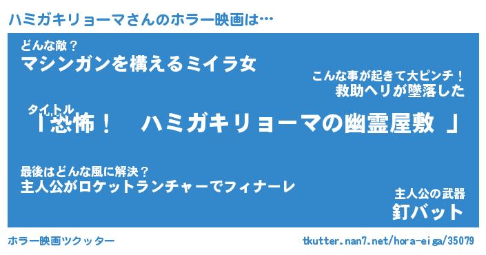 | 男性向けラノベタイトル風あだ名 | 『ハミガキリョーマの憂鬱』 |