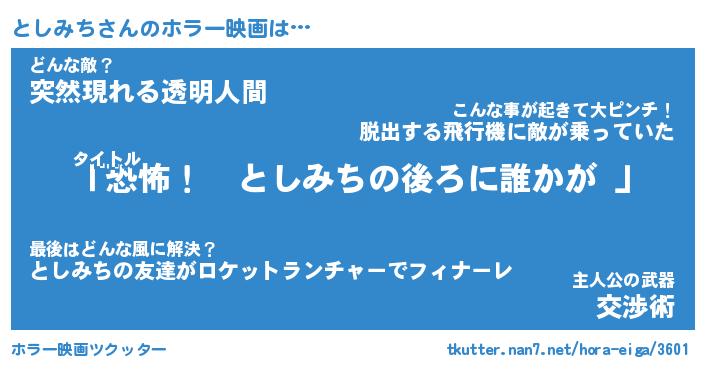| 男性向けラノベタイトル風あだ名 | 『としみちの憂鬱』 |