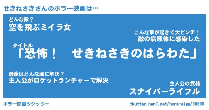 | 男性向けラノベタイトル風あだ名 | 『せきねさきの憂鬱』 |