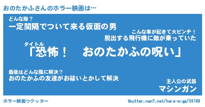| 男性向けラノベタイトル風あだ名 | 『おのたかふの憂鬱』 |