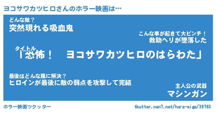| 男性向けラノベタイトル風あだ名 | 『ヨコサワカツヒロの憂鬱』 |