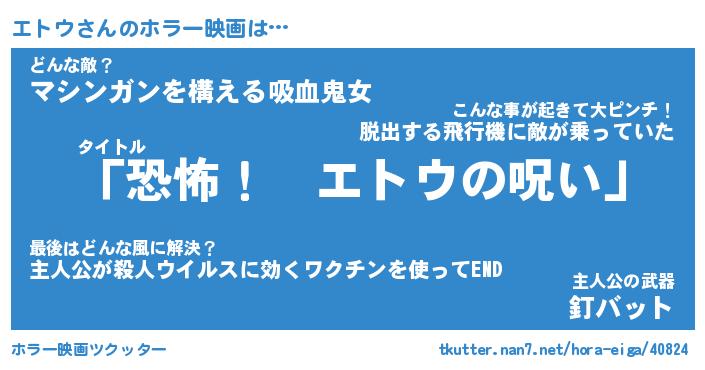 | 男性向けラノベタイトル風あだ名 | 『エトウの憂鬱』 |