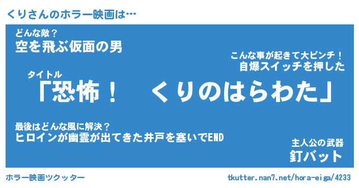 | 男性向けラノベタイトル風あだ名 | 『くりの憂鬱』 |