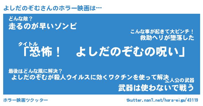 | 男性向けラノベタイトル風あだ名 | 『よしだのぞむの憂鬱』 |