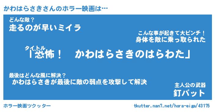 | 胡散臭い通販商品みたいなあだ名 | 『必ず成功するブレスレット…その名も「かわはらさき」』 |