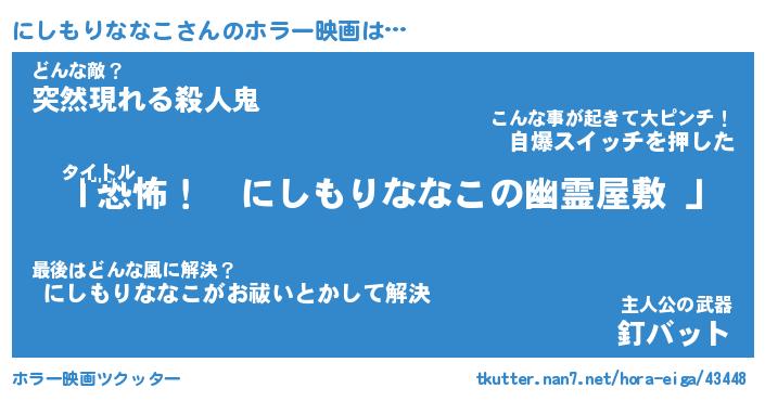 | 男性向けラノベタイトル風あだ名 | 『にしもりななこの憂鬱』 |