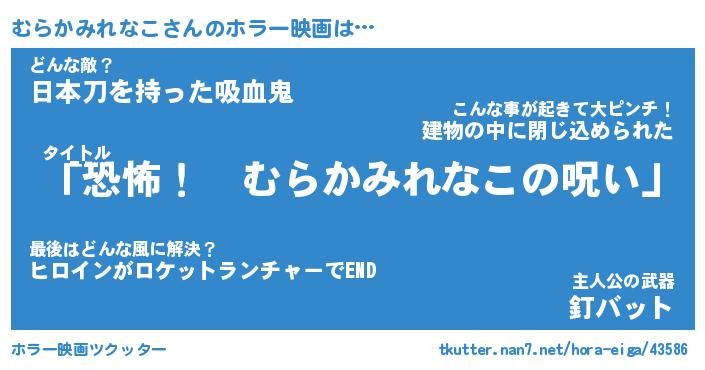 | 男性向けラノベタイトル風あだ名 | 『むらかみれなこの憂鬱』 |