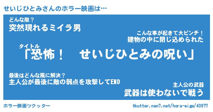 | 男性向けラノベタイトル風あだ名 | 『せいじひとみの憂鬱』 |